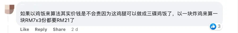 “Although the price of everything has increased, I still find this roasted chicken drumstick that I bought for RM19 at the chicken rice stall was too much, no?” he wrote.