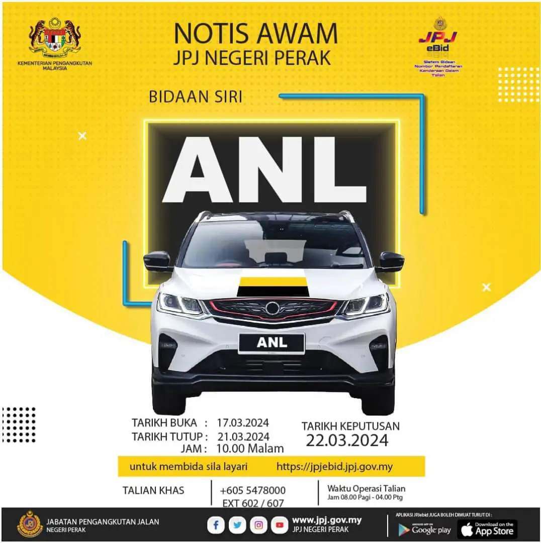 Recently, Malaysian netizens found themselves speechless as the Road Transport Department (JPJ) in Perak unveiled bidding for new number plate named ‘ANL’.