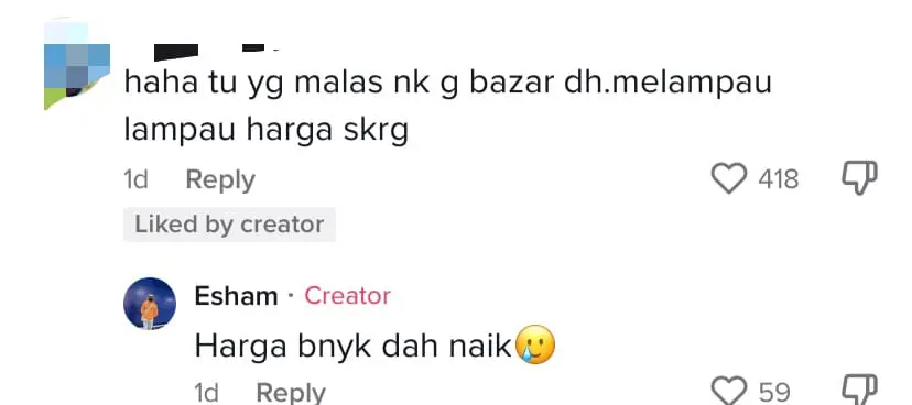 Netizens couldn’t help but chime in on the TikTok video, with some expressing their frustration at the escalating prices. One user commented, “Haha, that’s why I’m too lazy to go to bazaars now. The prices are getting out of hand.”