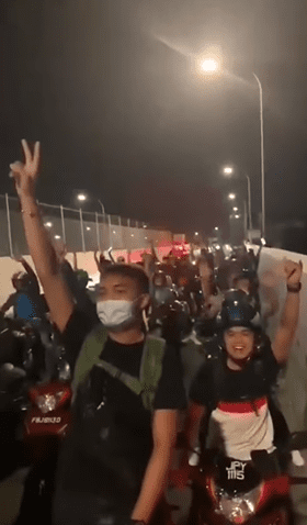 Numerous motorcyclists were also seen cheering on their bikes while pumping their fists into the air.