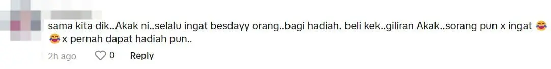 “Same here, brother. I always remember people’s birthdays, give gifts, buy cakes. When it’s my turn, not a single person remembers 😂😂 I never even get a gift.”