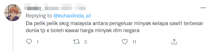 Others were also puzzled by the expensive cooking oil prices despite the fact that Malaysia’s the biggest international exporter of palm oil.