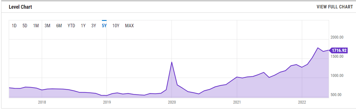As of May 2022, palm oil prices per metric ton currently stands at $1,716.92 (RM7,564.75), according to Ycharts.