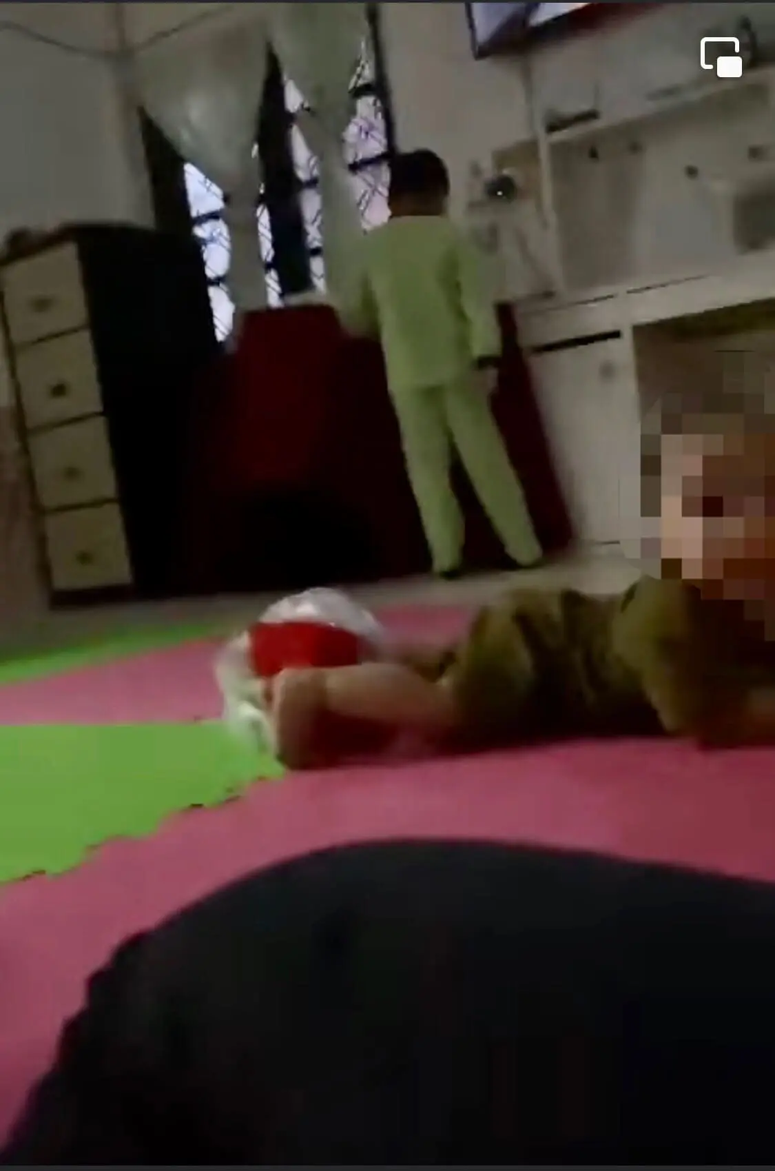 In a 44-second clip uploaded on social media yesterday (Dec 1), the nanny was seen tossing an item at the infant who was crawling at a corner.