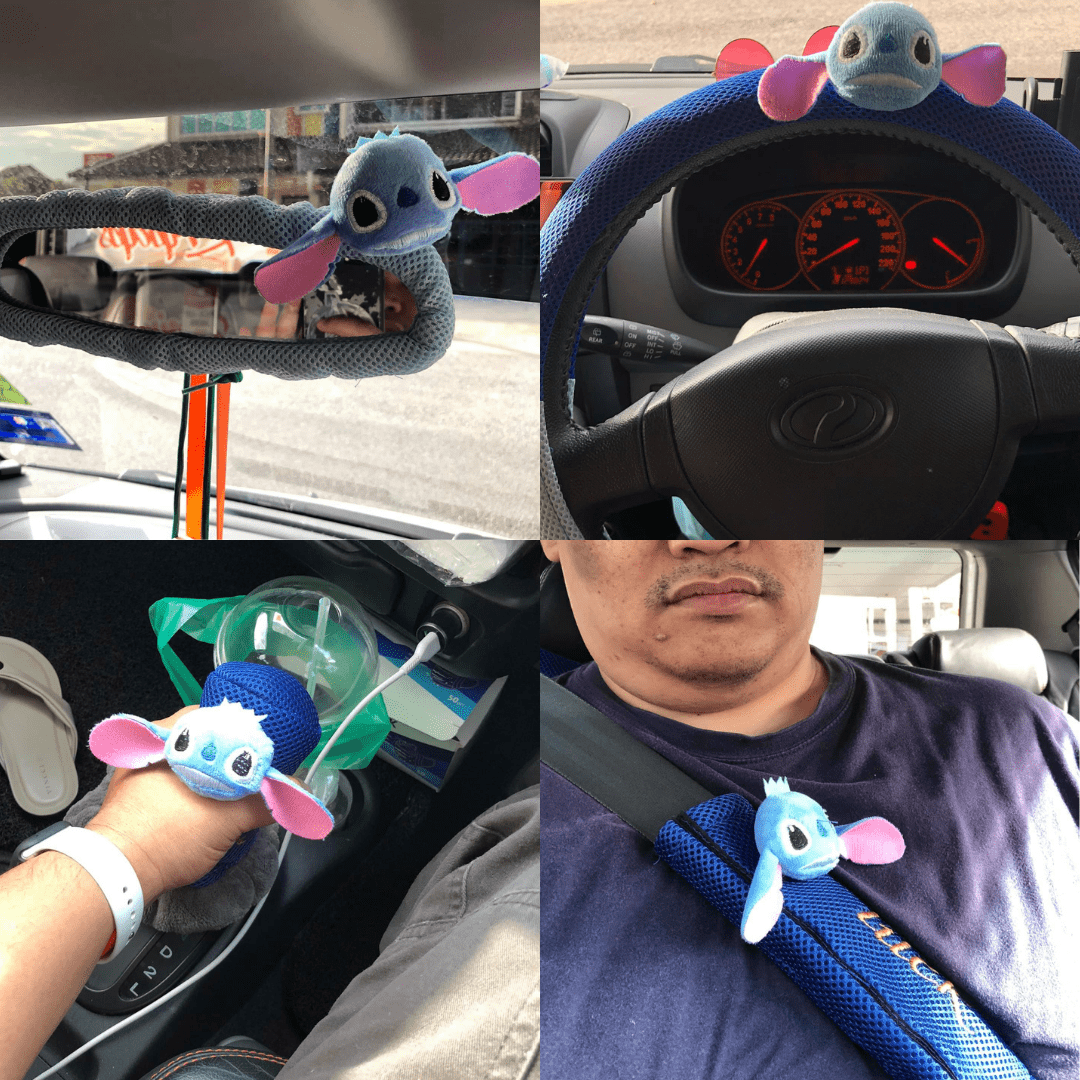From the photos, you can see that the safety belt, steering wheel, rear mirror and even the hand brake are adorned with Lilo & Stitch accessories! Mohd Firdaus wrote the following caption: “I borrowed my niece’s car to drive but instead I saw Stitch everywhere! It’s quite upsetting and I can’t help but wonder whether this is how a girl’s car looks like.”