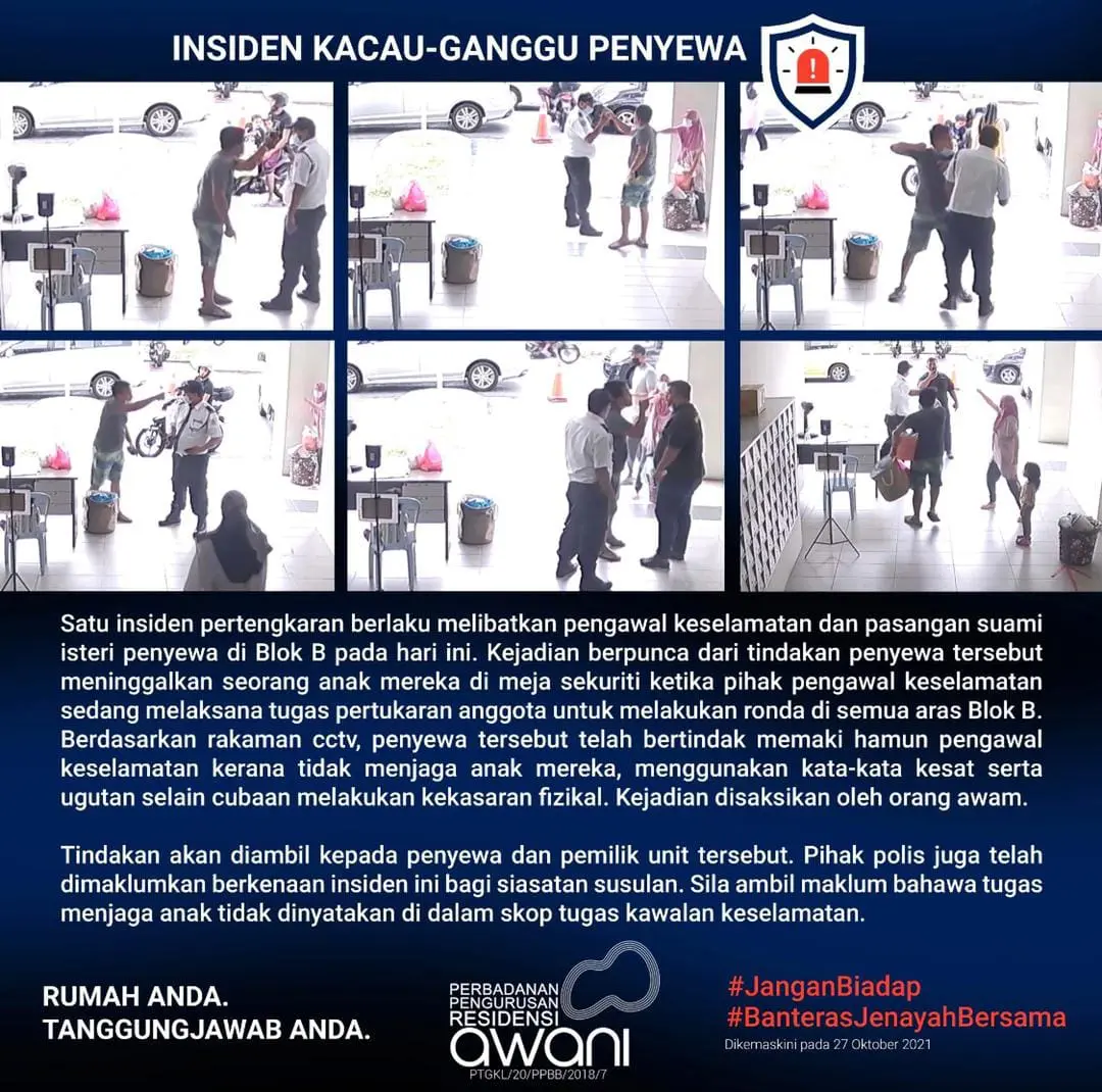 “Please be aware that taking care of your children is not within the scope of our security guard’s jobs,” emphasised the management.