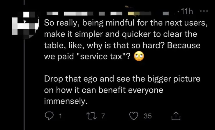 On the other hand, several netizens said that it wasn’t an issue of whether one had paid service charge or tax, but rather a matter of being considerate to others.