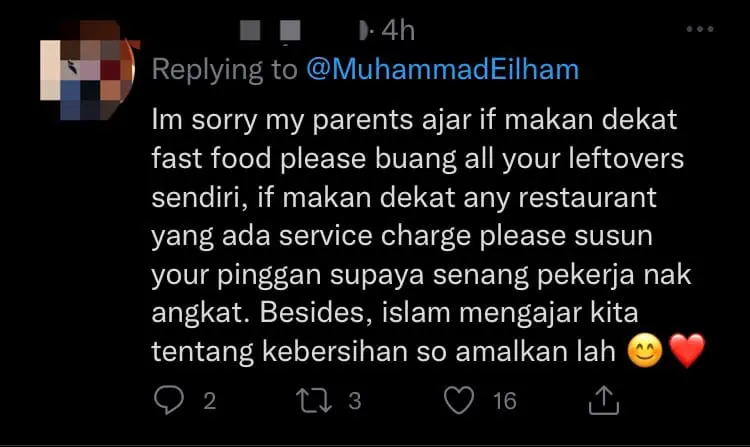 A netizen recently took to Twitter to call out those who didn’t clean up the table after their meal at a Texas Chicken outlet.