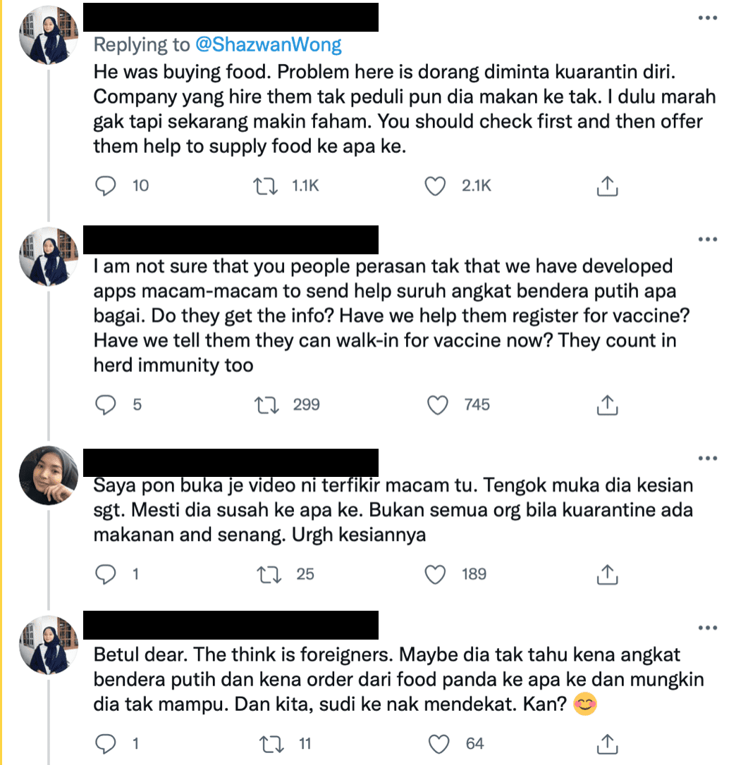 Let’s help out those in need during this difficult time and not discriminate against foreign workers who have left everything behind for a better life in Malaysia!