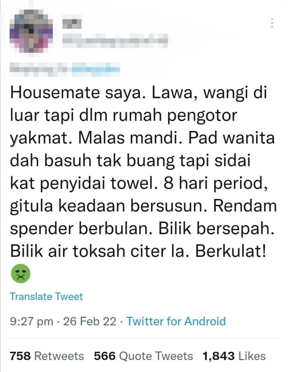 Share your experience while staying with unhygienic housemates. Express your anger in this tweet. Go!