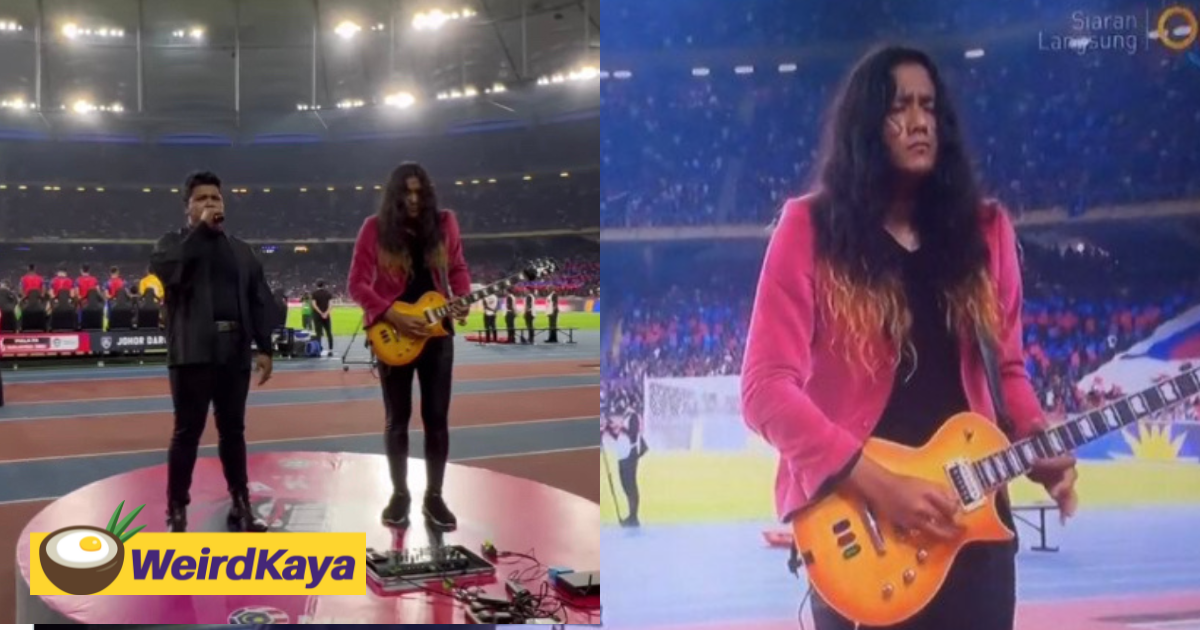 This occurred during the pre-game when Idris Brown performed the national anthem Negaraku alongside musician Muzza, who played the electric guitar.