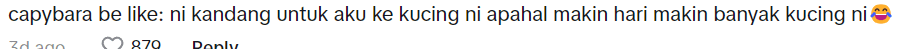 At the time of this writing, the video has amassed over 100,000 views, and numerous Malaysians expressed their surprise at the sight of another cat inhabiting the capybara enclosure.