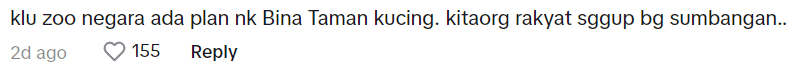 Many commenters joked about the situation, with one user suggesting, “If Zoo Negara has plans to build a cat park, we the people are ready to contribute.”