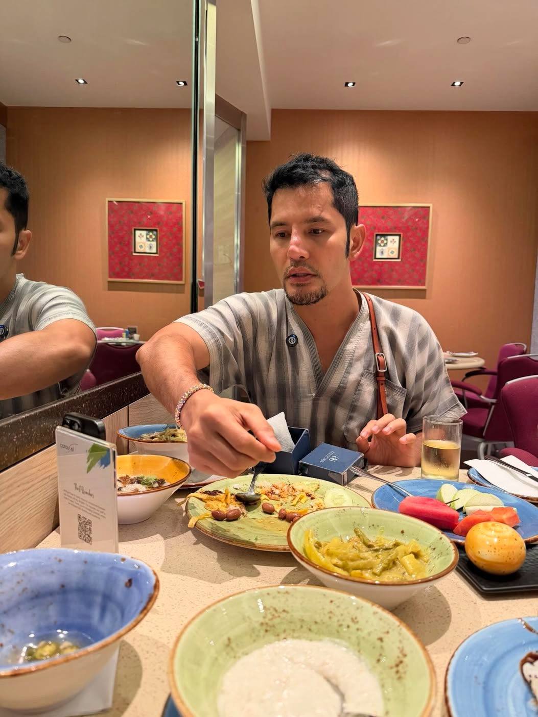 Menerusi hantaran di Threads, Shahida berkongsi momen kelakar bersama Aliff yang taksub berniaga biarpun sedang menjamu selera.