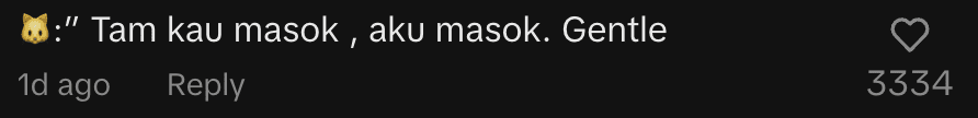 Meanwhile, another user said, “Tam, kau masuk, aku masuk. Gentle.” (“Tam, if you go in, I’ll go in. Gentle.”