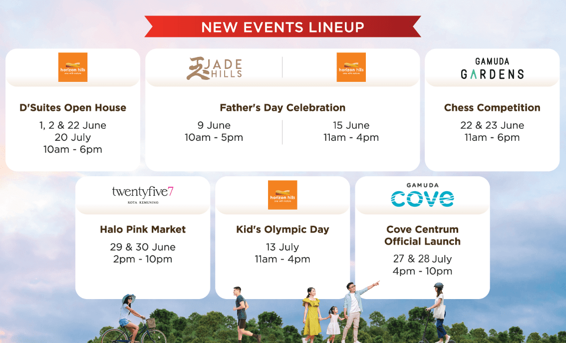 Mark your calendars for Gamuda Land events across their townships happening from 1 June to 28 July at various locations.