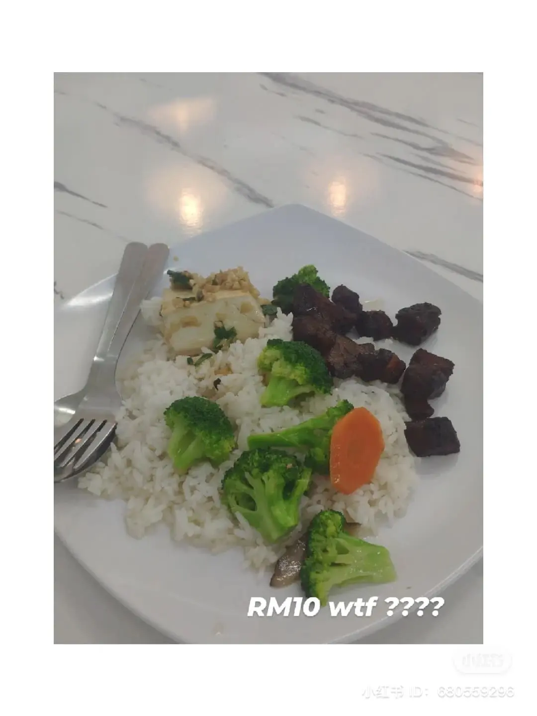 However, a netizen 那个某斌 recently took to XiaoHongShu to share a picture of his economy rice, which came with a paltry portion of meat and veggies that cost him a whopping RM10.