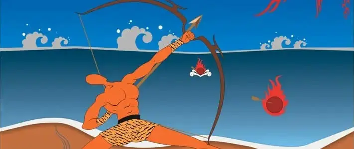 Long ago, there were ten suns burning in the sky, scorching the land and causing severe drought and widespread famine.