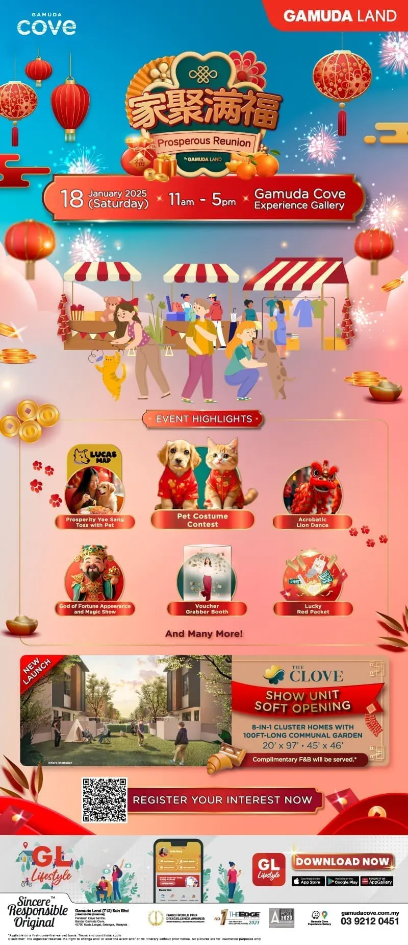 Join the Prosperous Reunion event at the Gamuda Cove Experience Gallery on 18 January 2025, from 11am to 5pm, for an unforgettable day filled with fun, joy, and plenty of surprises.