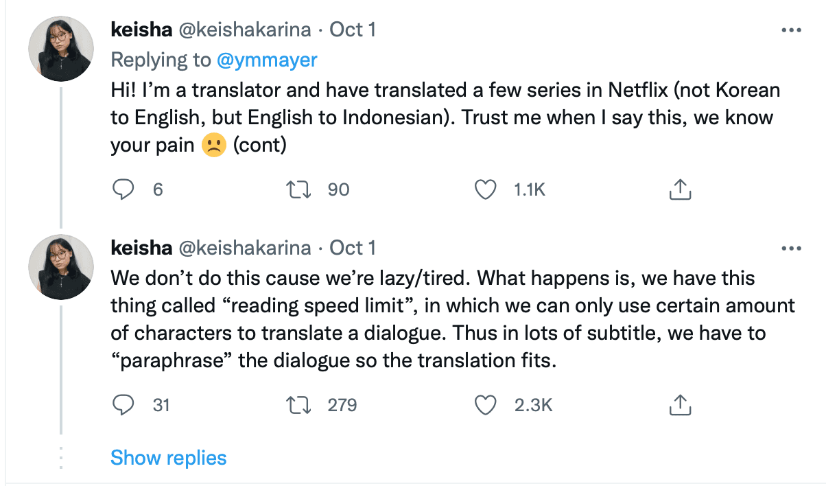 There were also others who pointed out further differences between closed caption and translation.