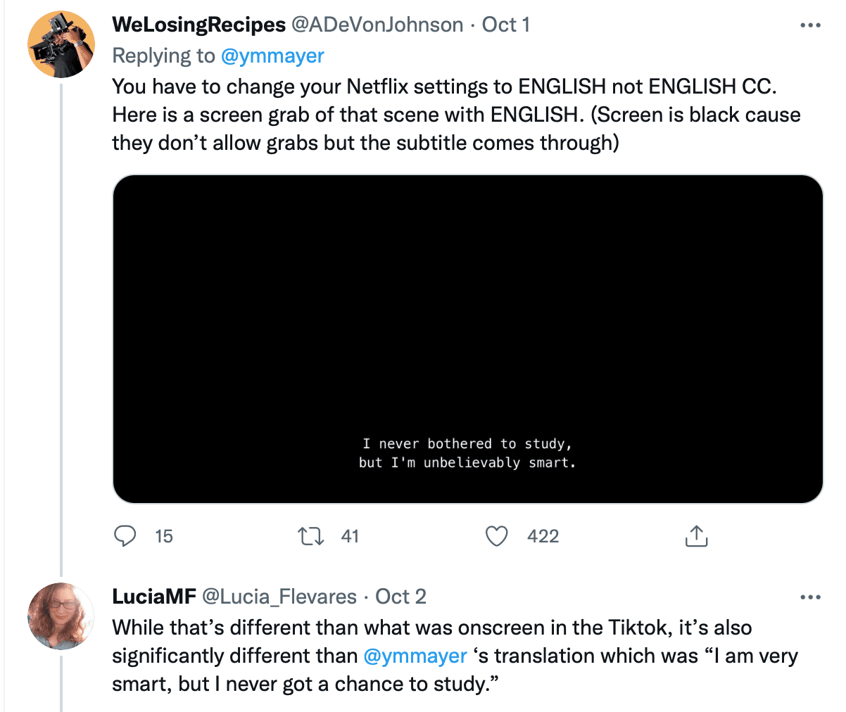 However, in one scene, the subtitle translation read “I’m not a genius but I can work it out.”