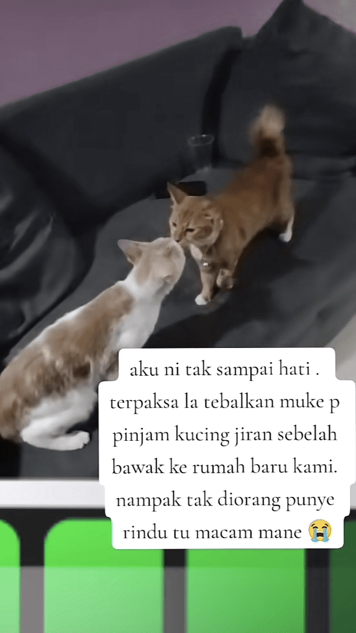 After moving houses, the fluffy cat misses her neighboring feline friend, Si Teh, so much that her heartbreak became evident to her owners.