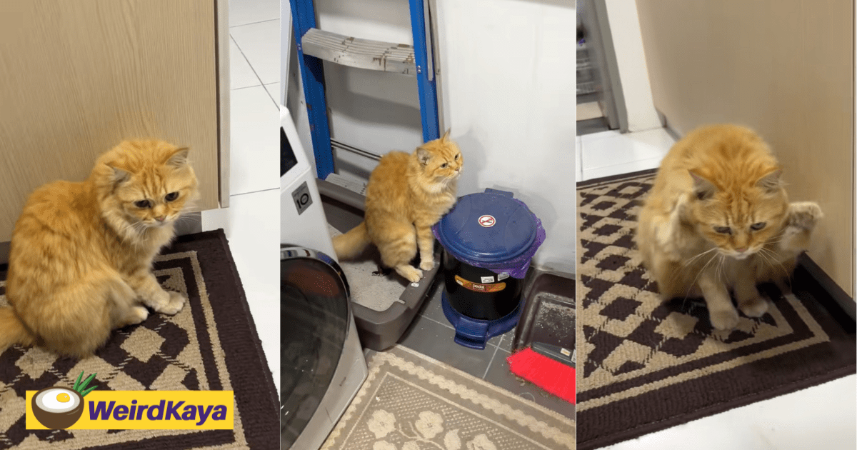It begins with the cat performing a typical routine: using its litter box. However, the twist comes when, instead of covering its business with sand as expected, the cat opts for an unusual alternative.