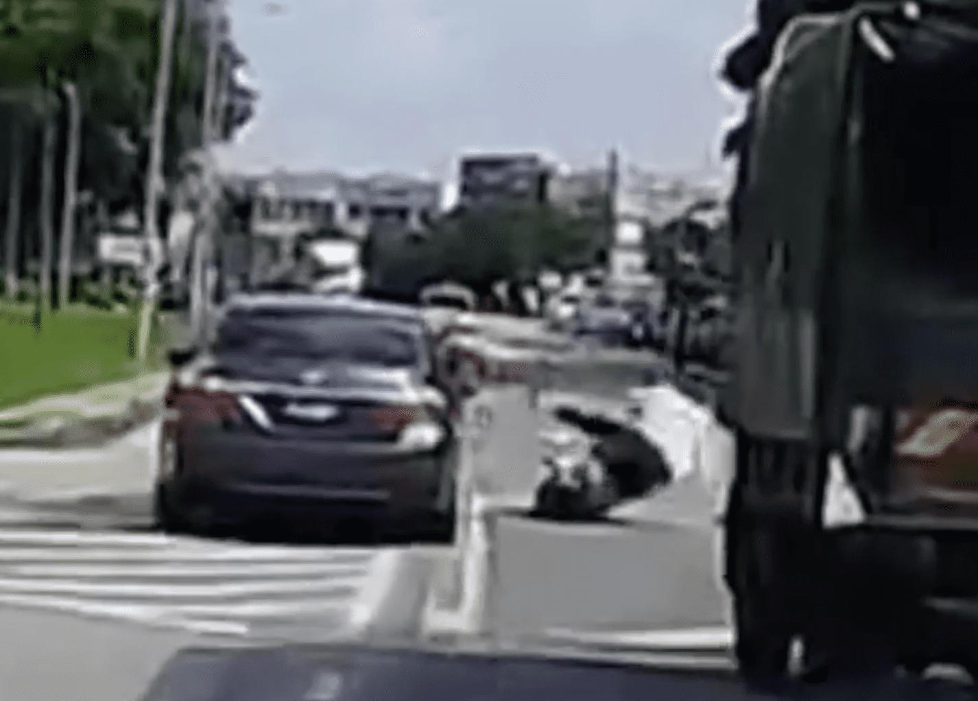 The motorcyclist’s actions were caught in a viral video posted by a Facebook user named Low Chin Hee yesterday (Apr 27).