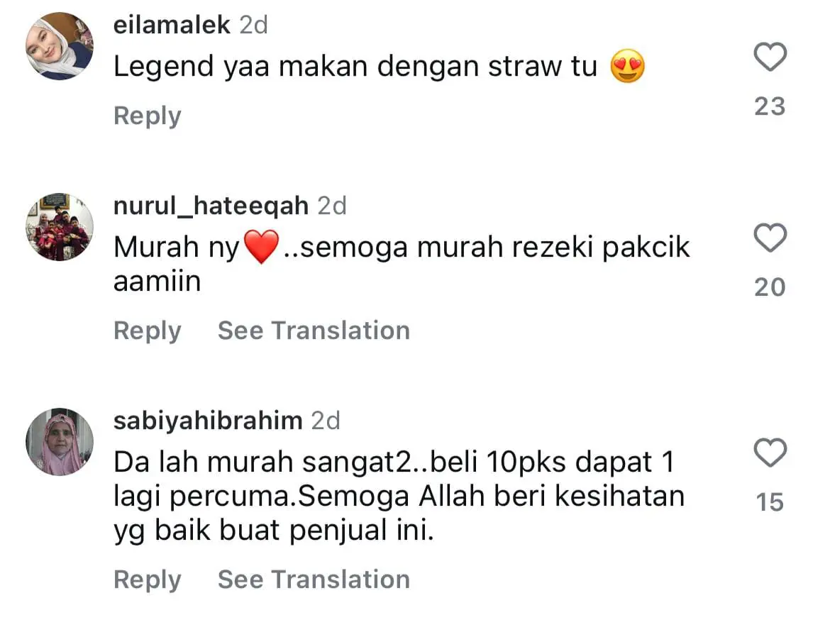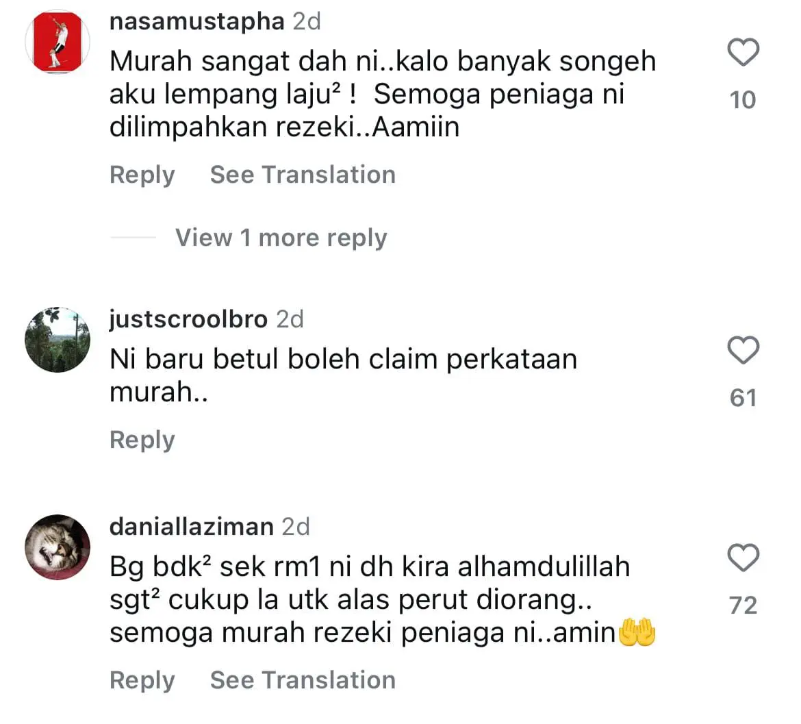 Meninjau ke ruangan komen, warganet terkejut akan harga laksa yang dijual begitu murah dan ada juga yang tidak putus mendoakan rezeki peniaga tersebut senantiasa melimpah ruah.