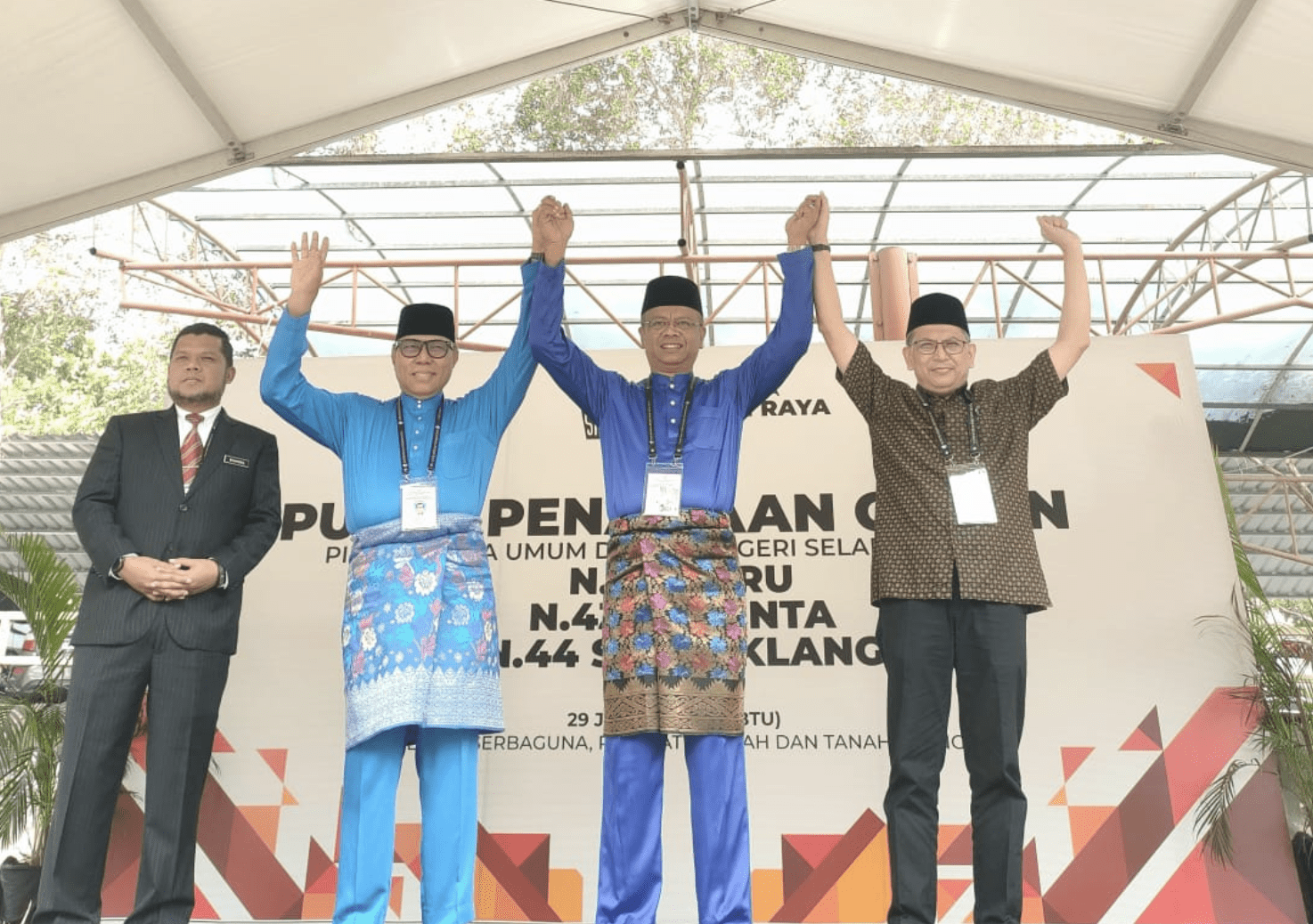 The announcement of the candidates’ names was made at 10:30 am by three different managing officers, namely Mohd Shahrizal Mohd Salleh (N.42), Abd Razak Maksud (N.43), and Shahman Jalaludin (N.44) on the stage in the compound of the respective hall.