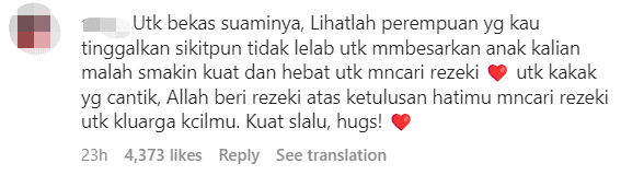 “To her ex-husband, look at the lady you’ve left, she didn’t give up on raising your child but became stronger and more powerful to earn money. To the pretty sister, God will bless you for your sincerity to earn money for your small family. Wishing you strength always, lots of hugs!”