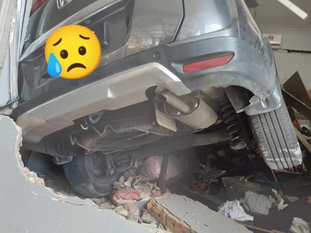 At around 1:20 PM, a Honda BRV driven by a man in his 30s, accompanied by his 17-year-old daughter sitting in the front passenger seat, crashed into the bedroom of the victim’s house.
