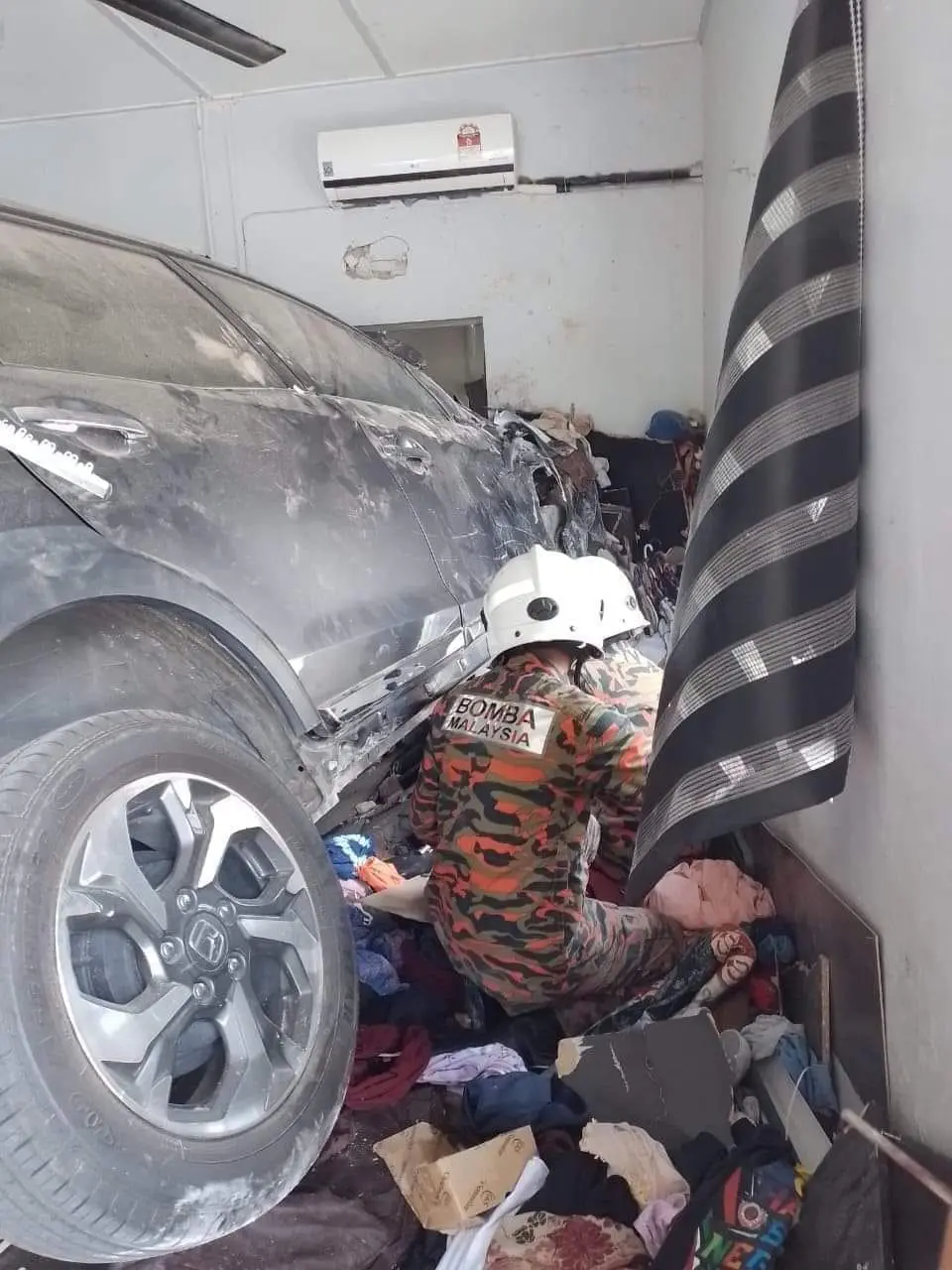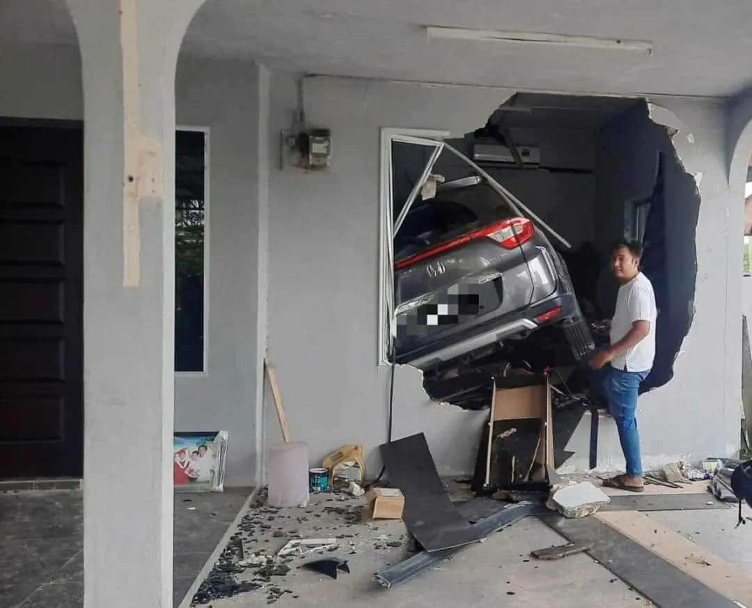 A husband’s decision to take his heavily pregnant wife and children for lunch just a day before her delivery miraculously saved the family from an unexpected crash by a Honda BRV at Taman Perak yesterday (17 Mar).