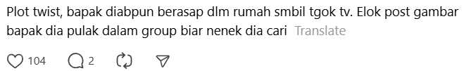 “Plot twist: the father is also vaping at home while watching TV. Might as well post the father’s picture in the group too, so the grandma will come looking for him.”
