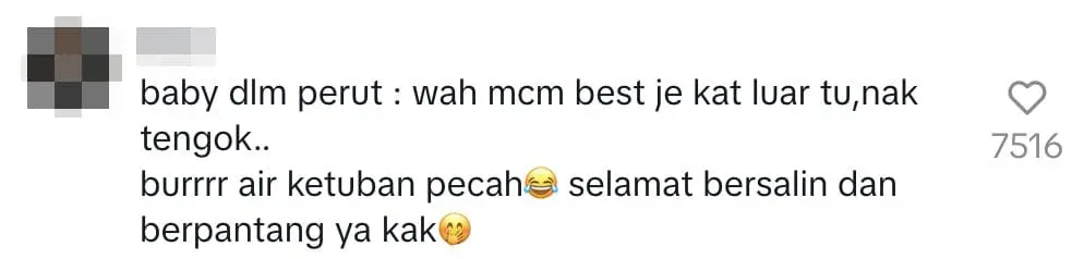 Besides, she shared that more and more amniotic fluid came out after the moments captured in the video and most people were running around grabbing batik cloth, old rags and soap.