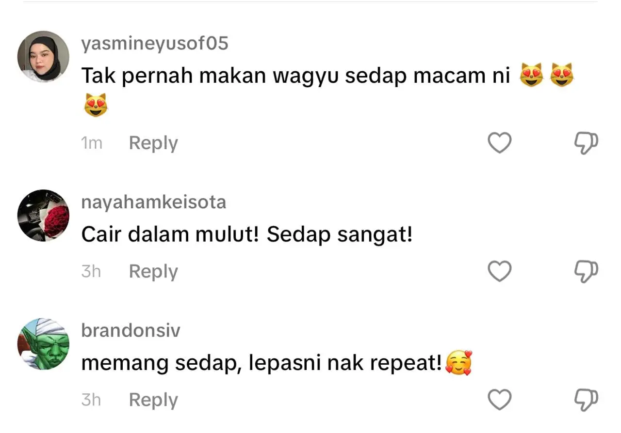 Meninjau ruangan komen, pelanggan yang pernah merasai sendiri Wakayama Wagyu mengakui keenakan makanan di Mittoapu dan turut meluahkan perasaan tidak sabar untuk berkunjung semula.