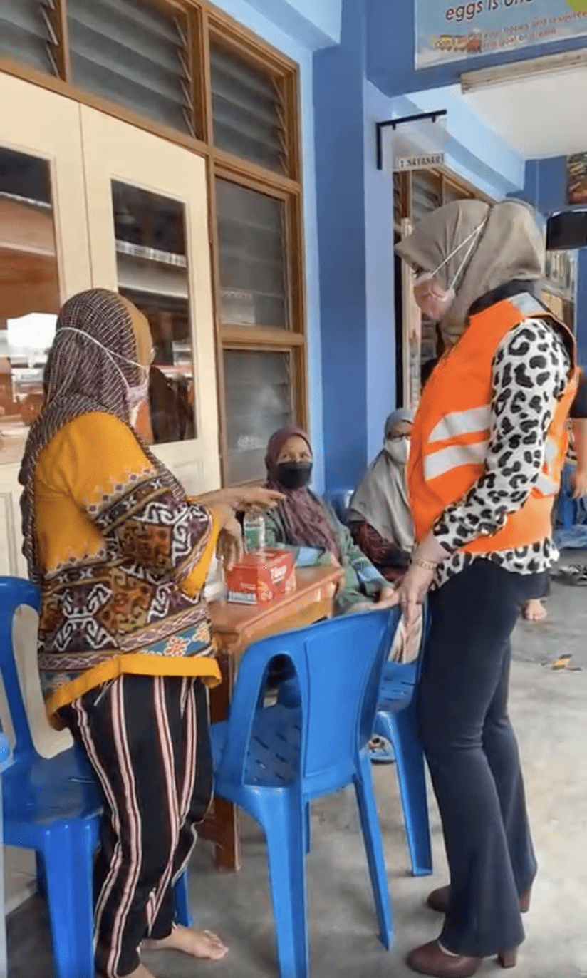 In the video, Rina was seen walking around in a pair of classy high heels at an evacuation relief center located at SJK (T) Saraswathy, Jalan Kelang Lama.