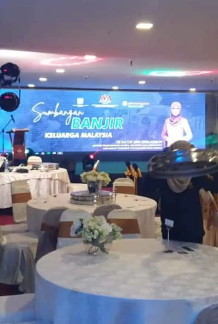 Today, a poster showing Women, Family and Community Development Minister Datuk Seri Rina Mohd Harun allegedly holding a dinner banquet to help flood victims has gone viral on the internet.
