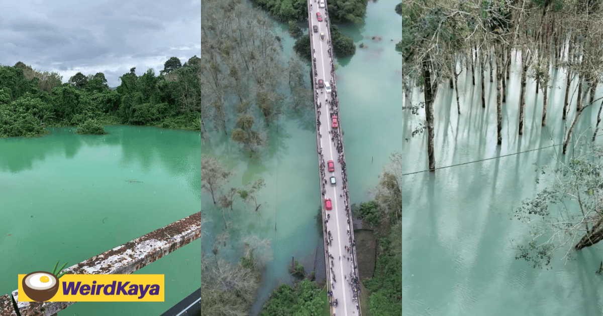 In a stunning display of nature’s magic, the river in Machang, Kelantan, underwent a breathtaking transformation, turning into a mesmerizing jade green after a heavy downpour.