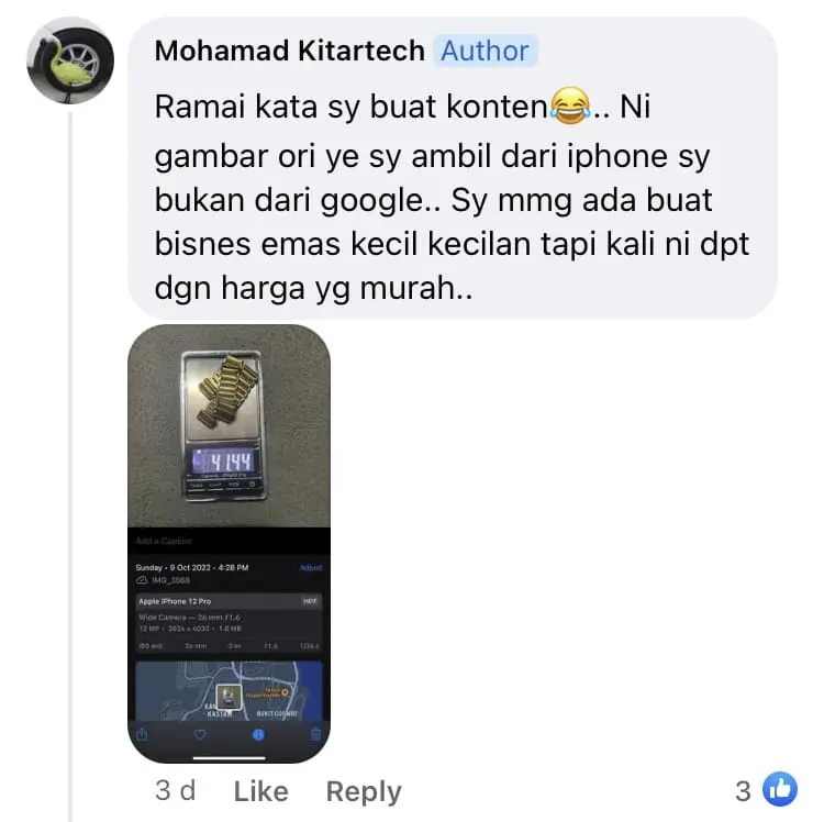 While many also expressed doubt over Mohamad’s claims, he wrote in the comment section that the pictures were taken with his phone and that he runs a small gold business as well.