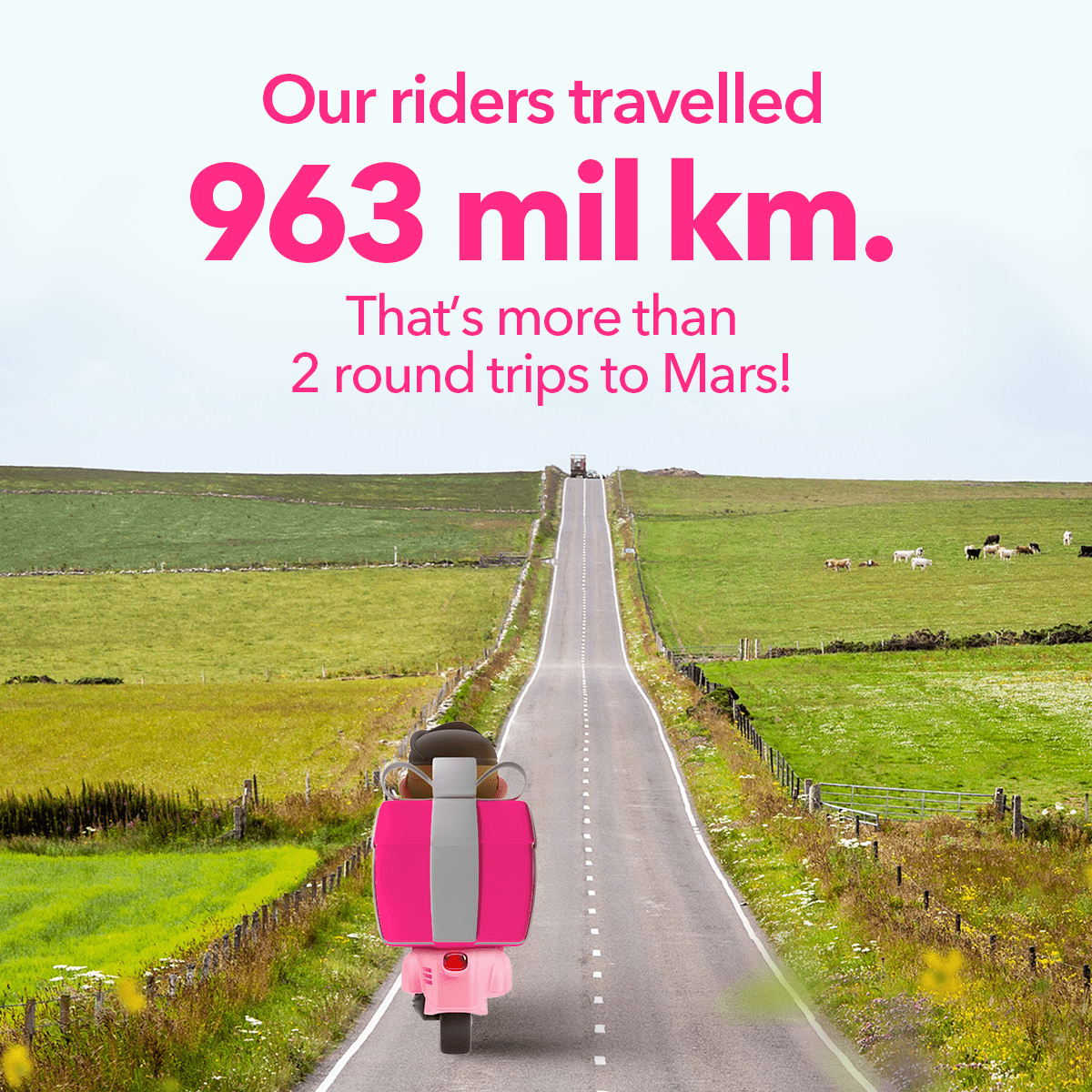And while foodpanda riders have been busy delivering orders, they have collectively covered an astonishing 963 million kilometres. This is equivalent to more than 75,500 trips around the Earth or more than two return trips to Mars!