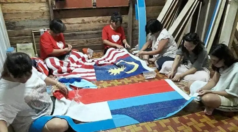 The villagers showcase their National and Malaysia Day spirit with beaded flags, a testament to their creativity and dedication.