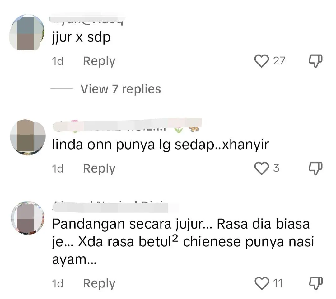 Menelusuri ke ruangan komen, warganet memuji keenakan masakan di Ahmad Lee Nasi Ayam dan ada juga segelintir yang mengecam masakan di restoran terbabit tidak sesedap dahulu.