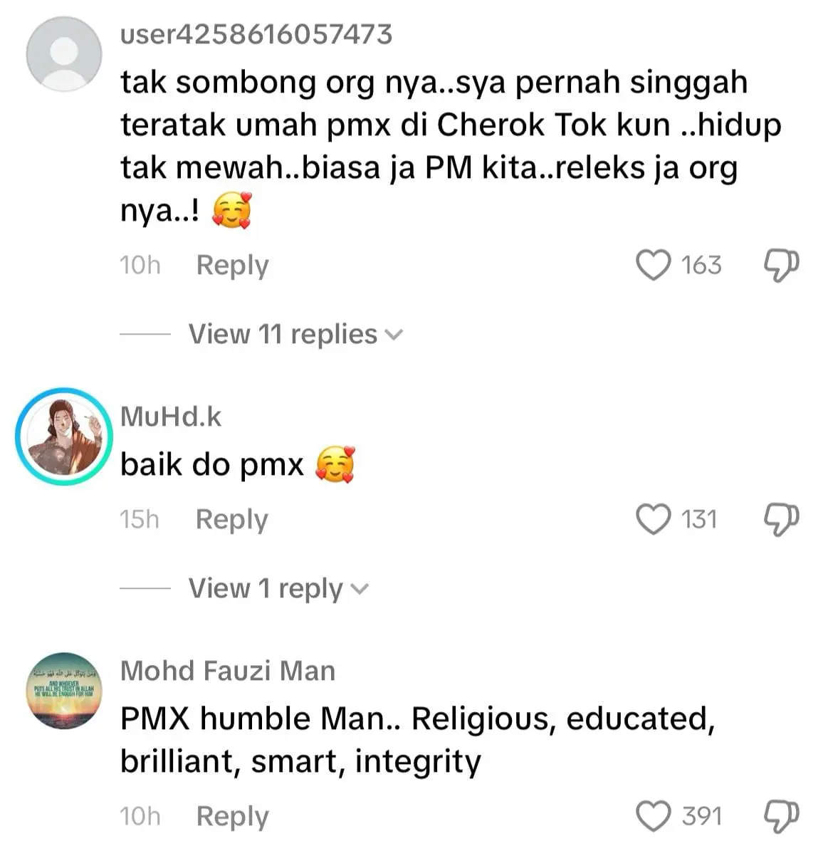Meninjau ke ruangan komen, wargamaya memuji sifat rendah hati pmx dan ada juga yang mendoakan kesejahteraan beliau bersama keluarga.