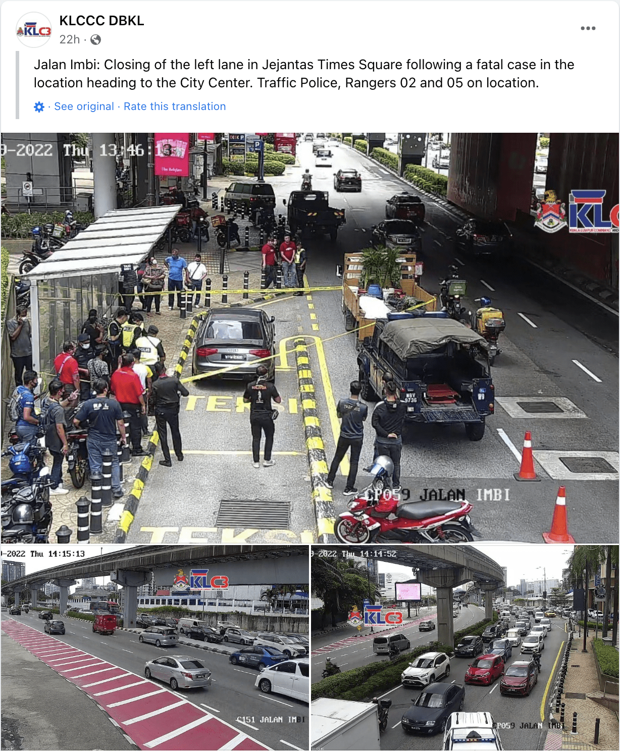 Earlier, KLCCC DBKL took to Facebook to inform the public of a road closure caused by the case on the left-most lane on Jalan Imbi.
