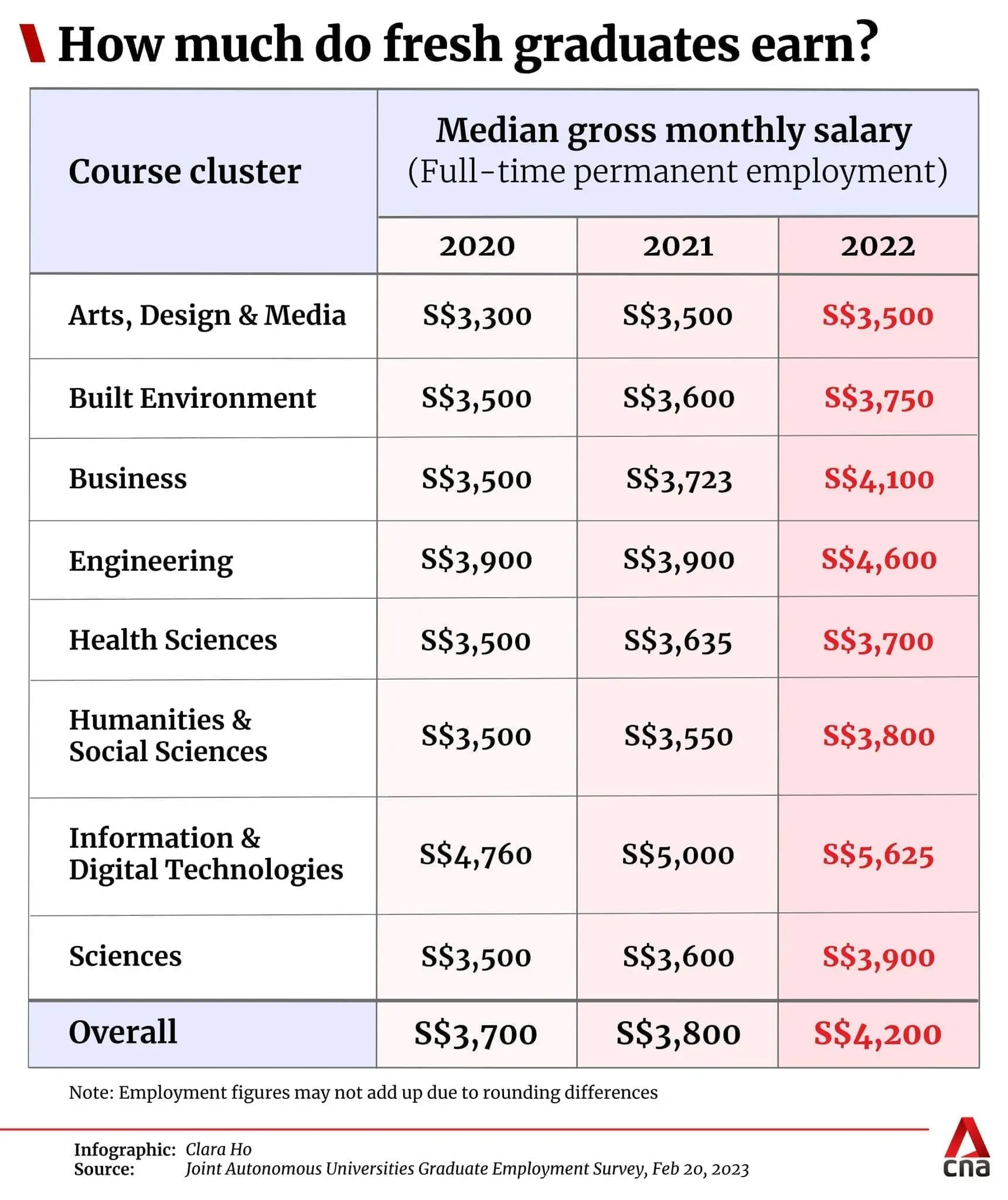 A Facebook post by Singaporean news outlet CNA has recently caught the attention of many, where it published a table listing down the salaries fresh graduates earn based on different career fields.