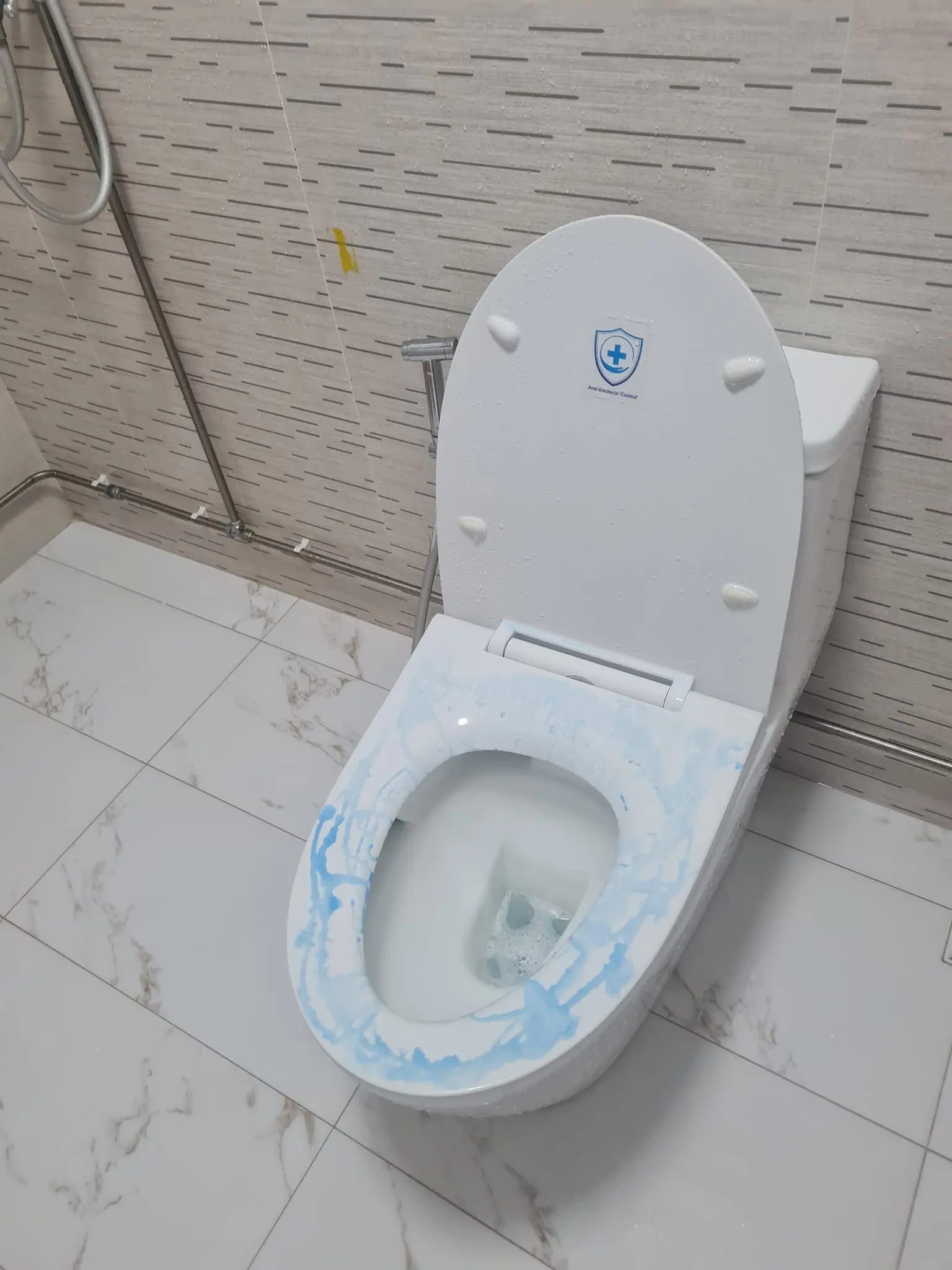 It’s been three days, and the stubborn blue stains are still holding on to this new toilet bowl, which is less than 6 months old.