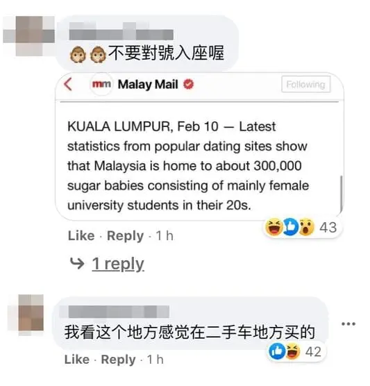 Some speculated that Findy’s source of income came from being a sugar baby, with one posting a news excerpt from Malay Mail which reported that Malaysia was home to about 300,000 sugar babies, mostly female university students in their 20s. Another said that she may have bought the Mercedes as a second-hand car based upon the photo’s background.