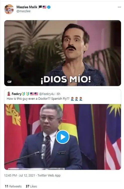 Former Education Minister Maszlee Malik also joined in the banter, tweeting that the “Spanish Fly” was a dangerous wrestling move, followed by a Dios Mío (meaning ‘Oh, my God’ in Spanish) meme.