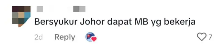 Another user’s comment translated to, “Grateful that Johor has a hardworking MB,” reflecting appreciation for the Menteri Besar’s diligent efforts.